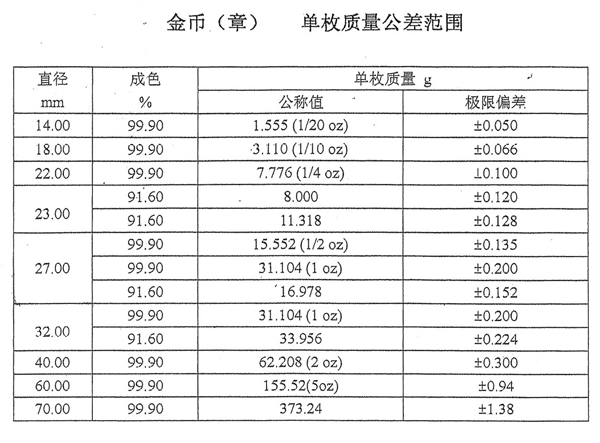 注:以上数据参考于上海造币厂技术处