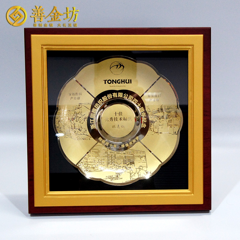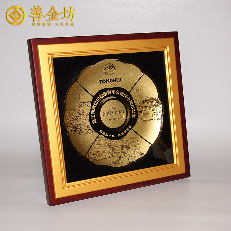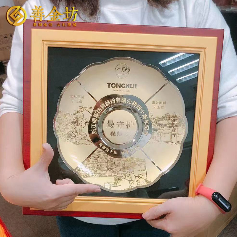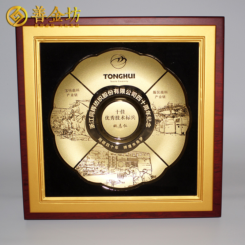 浙江同辉纺织40周年定制铜盘摆件