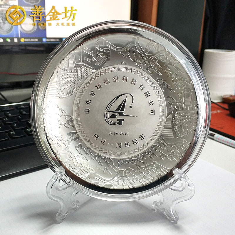 山东盖特航空200克纪念银盘_奖牌制作 纪念银盘定制 会议表彰