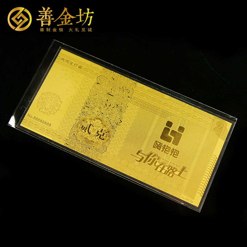 浙江嗨抱抱2克金钞_金钞定制 银钞制作 纪念钞定做 员工福利