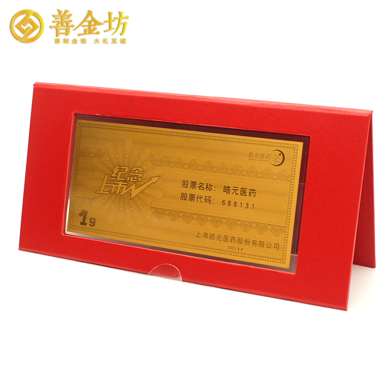 上海皓元医药A股上市定制1克金钞_金钞制作 纪念钞制作 定制金币 上市纪念 1g