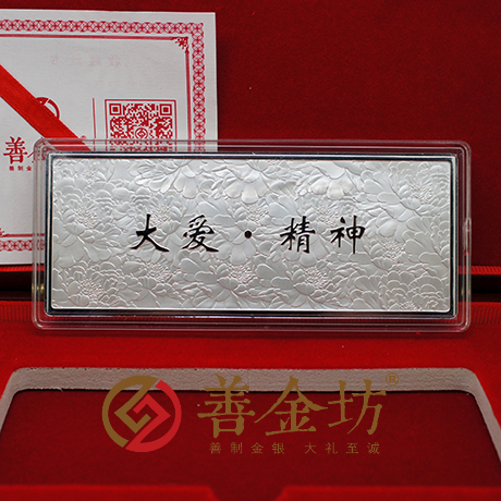 正面图案:镌有“大爱·精神”字样及装饰图案;