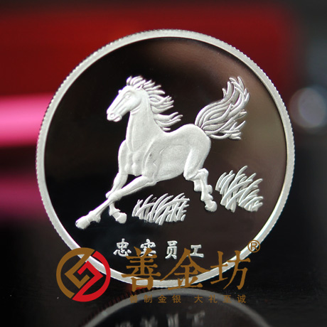 浙江普天集成_ 纪念币制作 银币制作 纪念章制作 制作纪念币 定做银币 奖牌制作。正面图案:“浙江普天集成房屋有限公司”、“Ag.999”字样及公司LOGO;背面图案:“忠实员工”字样及生肖马图案。银章直径35毫米,成色99.9%,含纯银30克(另有20g 15g 直径均是35mm)。 该纪念章由上海善金坊实业有限公司制造。成色标准,重量合格,质量精制。谨此证明。