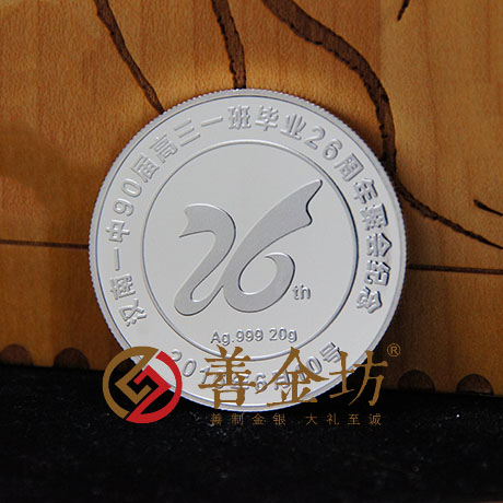 简介:26周年聚会纪念银章由999纯银铸造,成色标准,重量合格,质量精制。