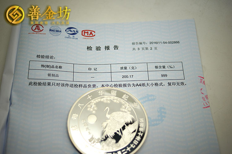 银章规格:直径80mm,成色99.9%,含纯银200克