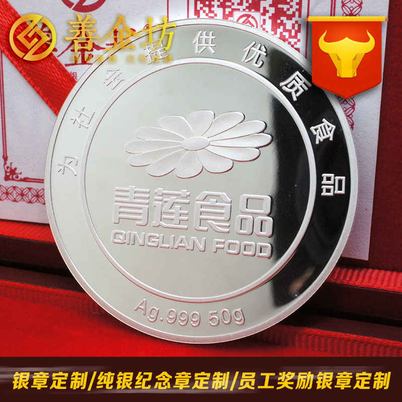 简介:青莲食品纯银纪念章由999纯银铸造,成色标准,重量合格,质量精制。