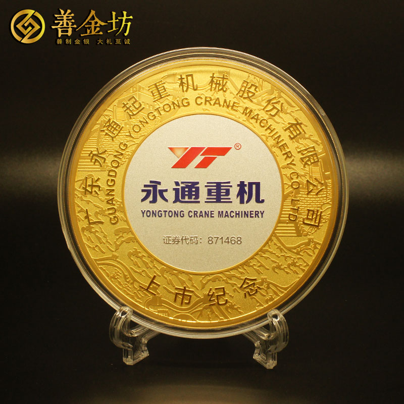 广东永通300克银鎏金纪念章_ 纪念章制作 金银章定制 定制纪念章 公司上市纪念品 300克 100mm