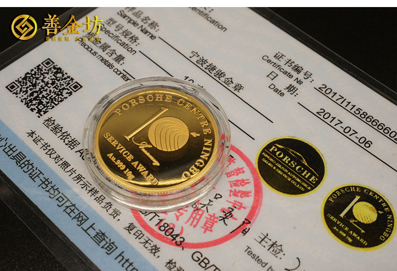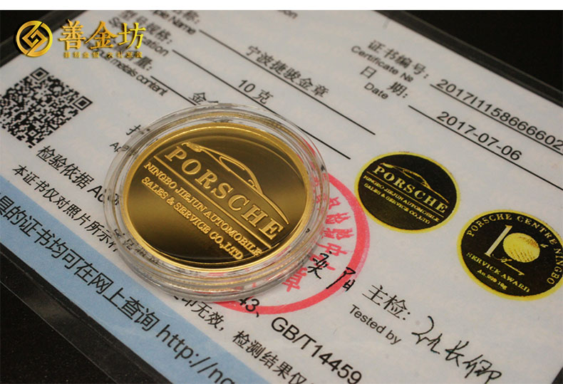 浙江宁波保时捷中心10克金章定制_ 纪念章制作 定做金章 金银章定制 制作金章 金章制作 定制金章 10克