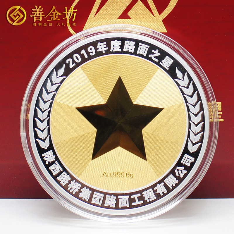 陕西路桥路面之星奖章_银镶金纪念章 定做纪念章 银章定制 纪念章制作 银章制作 员工福利