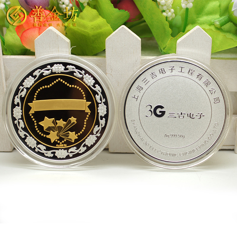 上海三吉电子定制银镶金纪念章-- 定做纪念币 银币定制 纪念章制作 定做纪念章 制作纪念章 奖章制作 银币制作