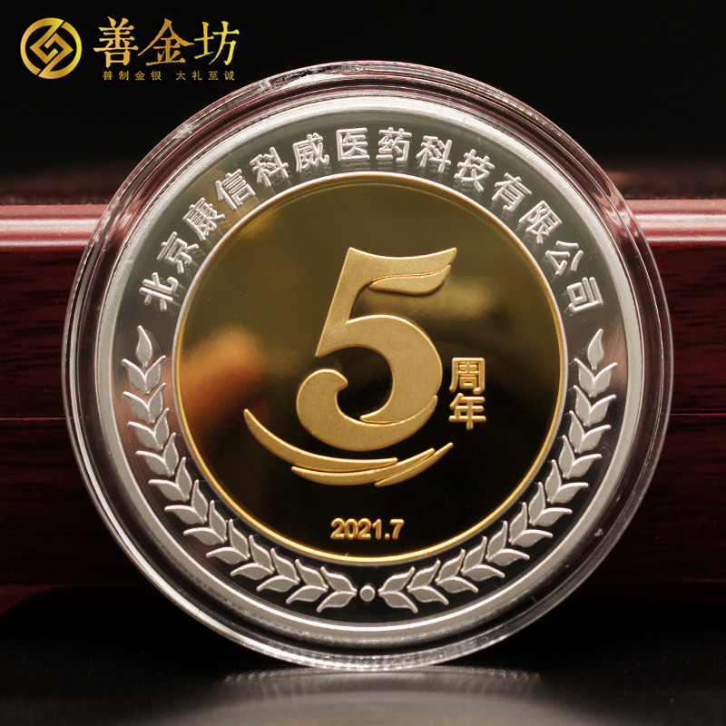 北京某医药科技公司成立五周年定制纪念章_ 银章定制 纪念章制作 银鎏金 50g