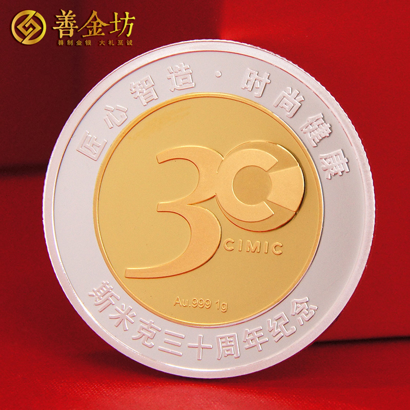 上海斯米克30周年定制银镶金纪念章_ 银章制作 定做纪念章 定制纪念章 10克