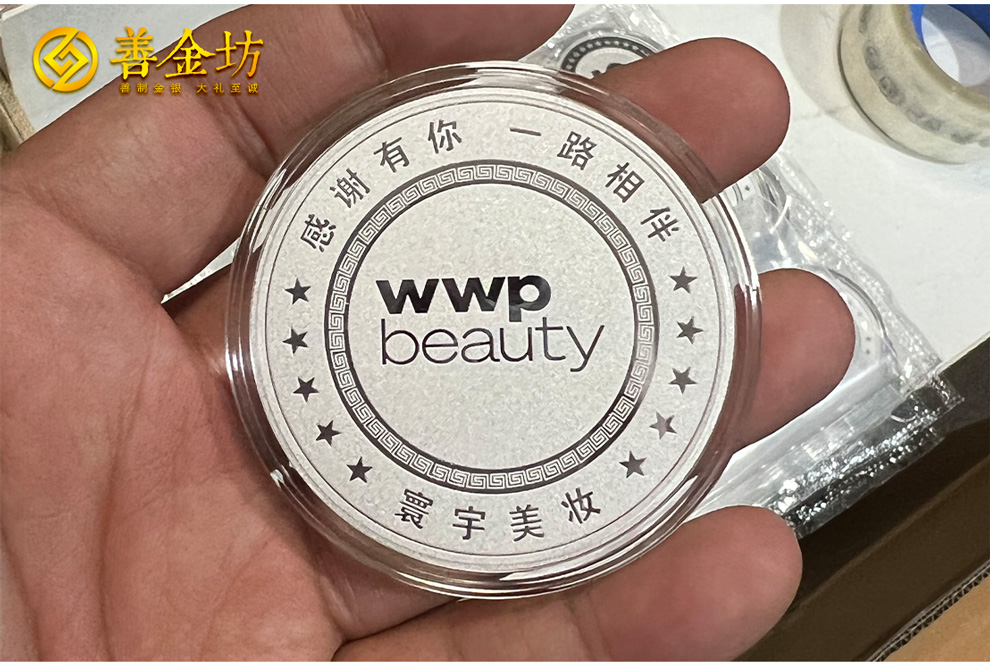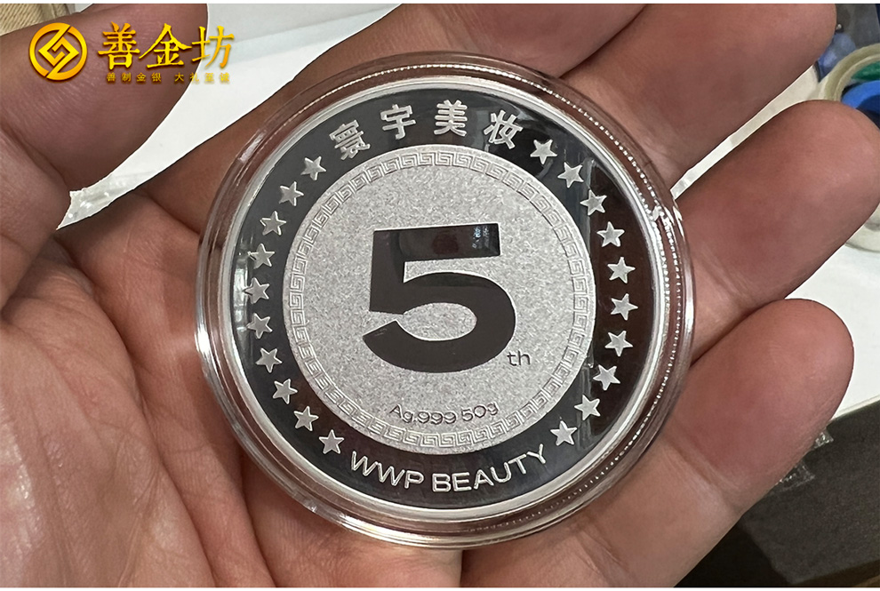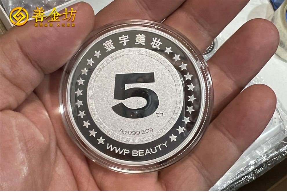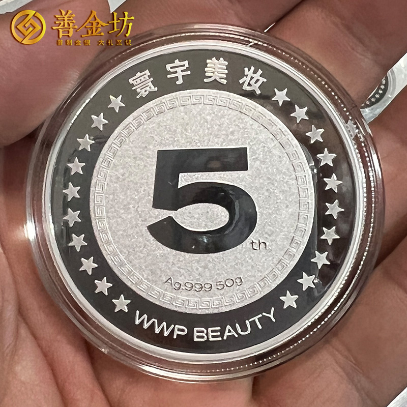 江苏寰宇美妆员工入职5周年定制纯银纪念章50克 制作银章 银章定做 银币定制