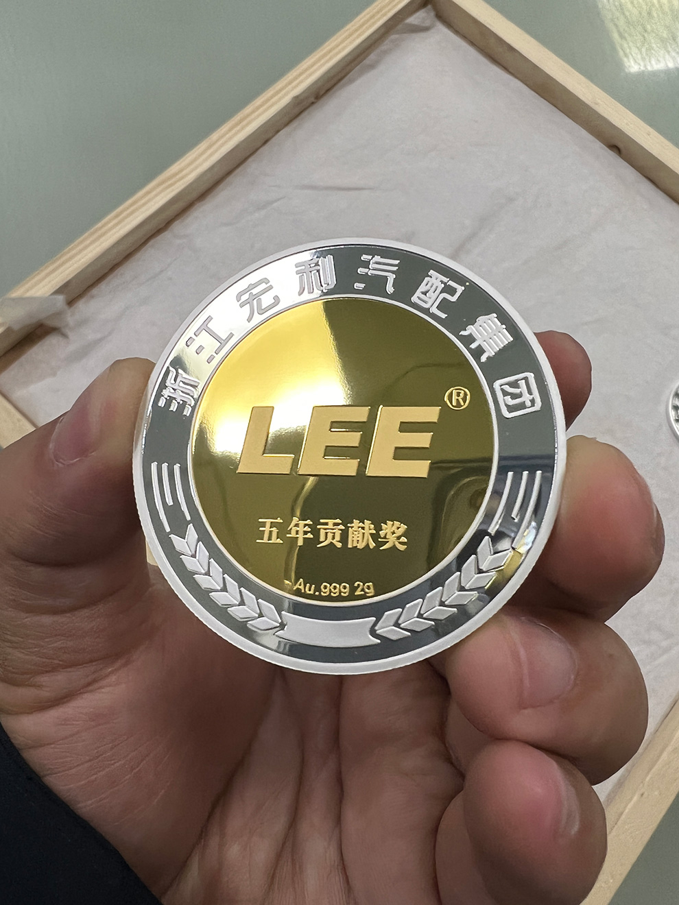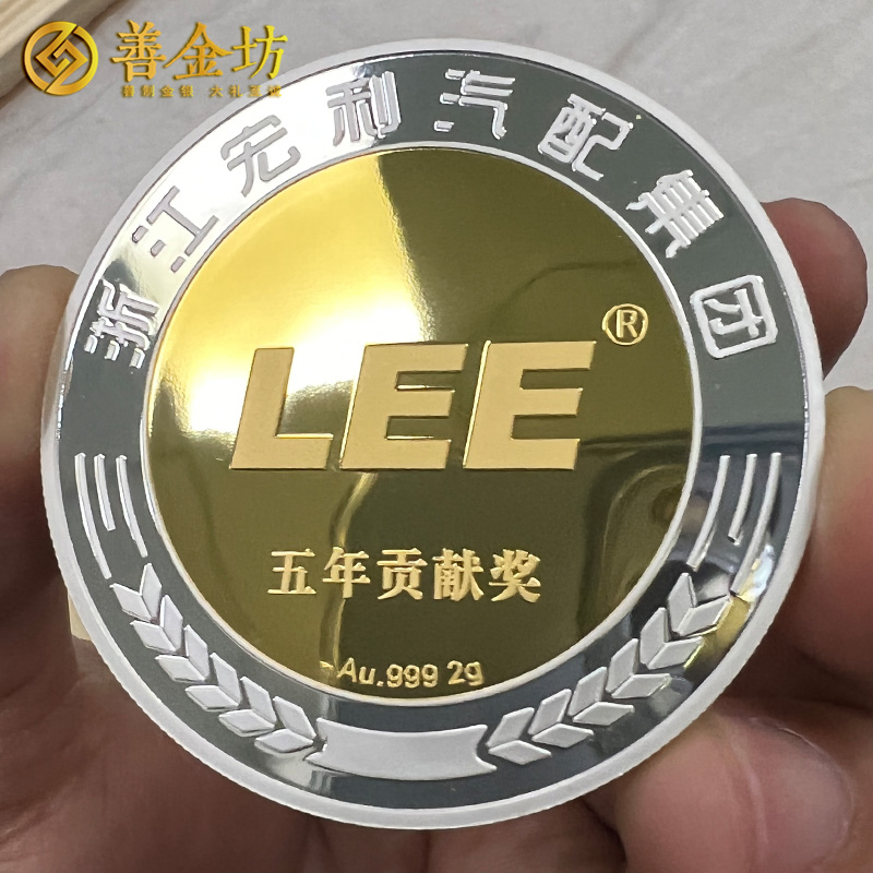 五年贡献奖纪念章直径:50mm重量:纯银50克镶纯金2克