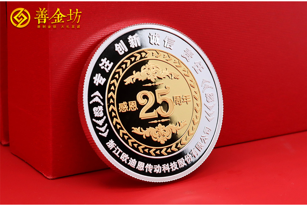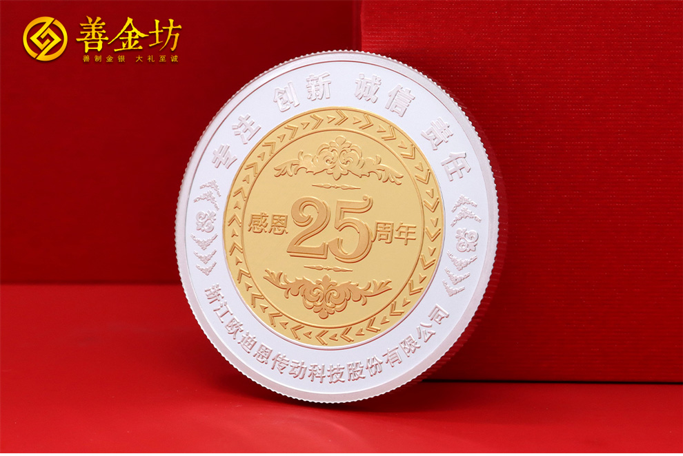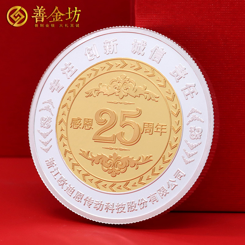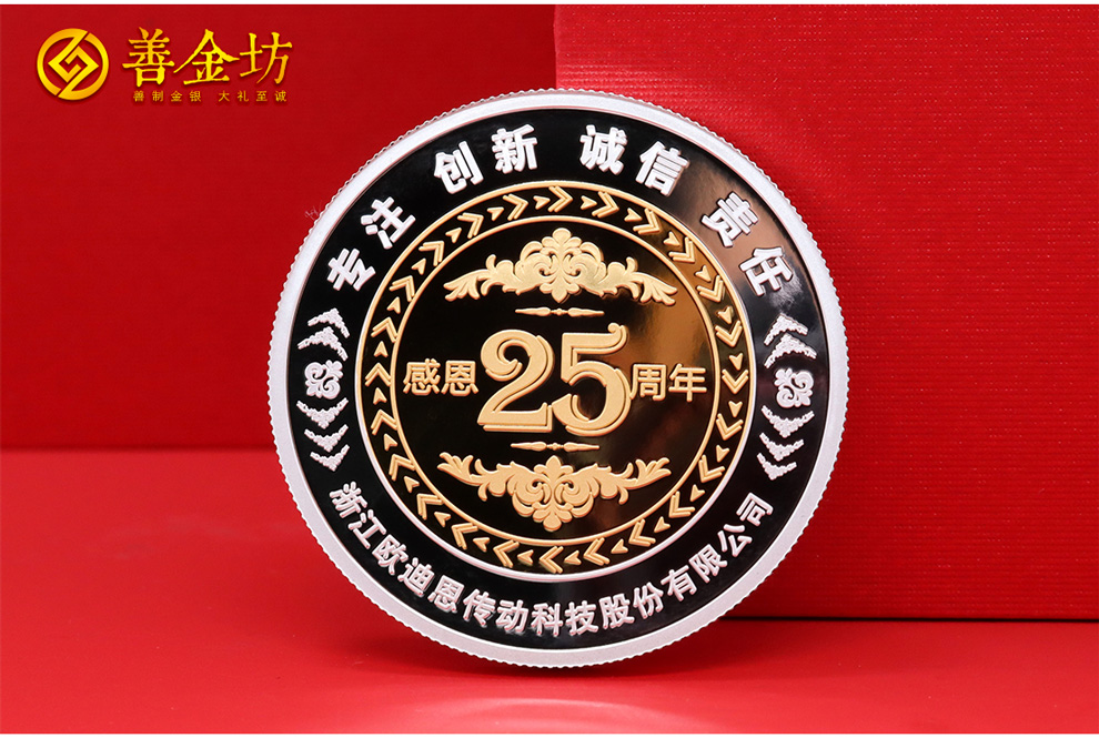 浙江欧迪恩25周年定制银镶金纪念章_ 定做纪念章 银章定制 纪念章制作 纪念章定制 制作纪念章 员工福利