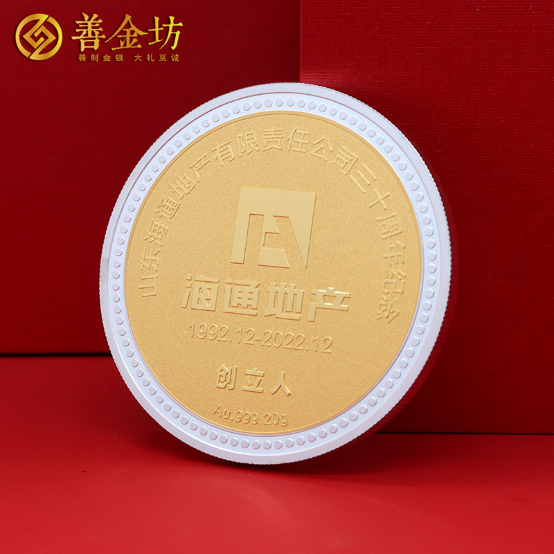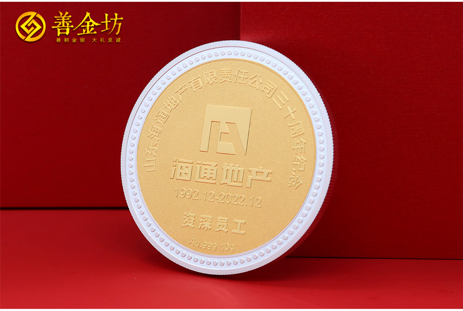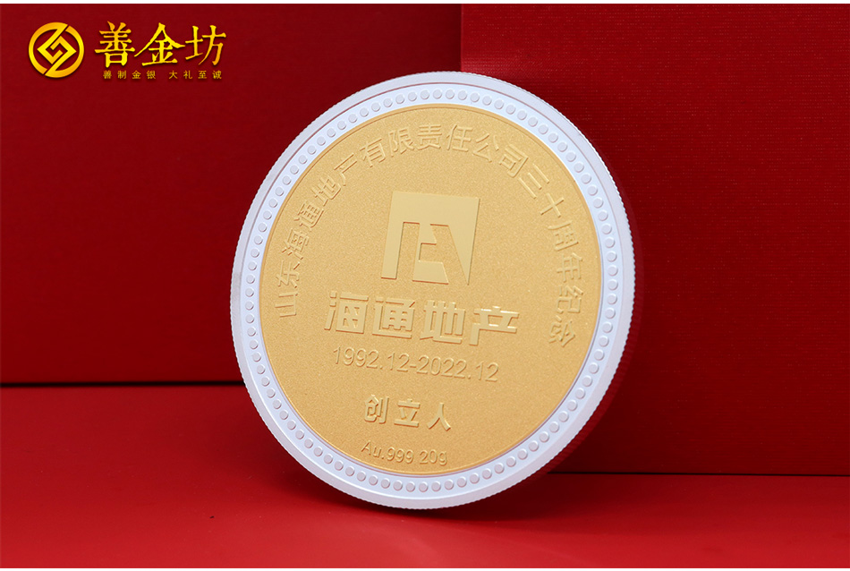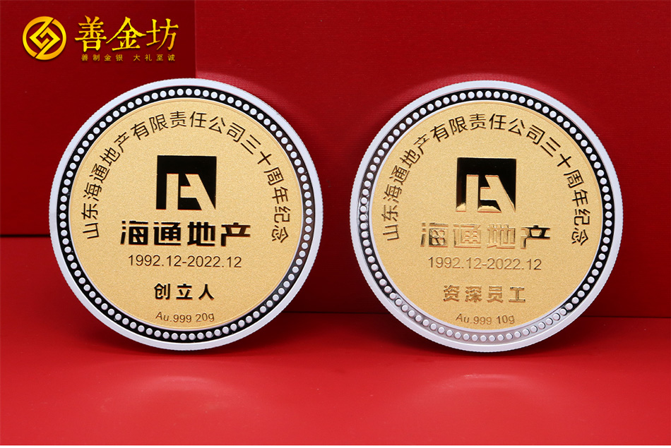 山东海通地产三十周年定制银镶金纪念章_ 纪念金币制作 银币制作 纪念章制作 定做银币