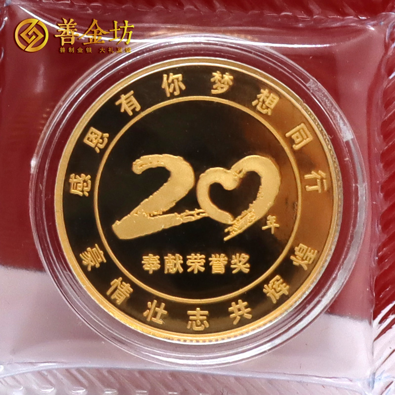 上海飞潮十年二十年员工纯金纪念章_ 定做金币 定制金币 金币制作