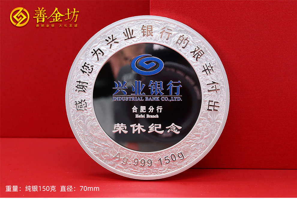 安徽合肥兴业银行定制150克荣休纪念章_ 定做纪念银币 银币定制 定做纪念章 银币制作