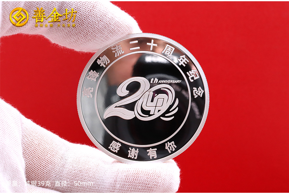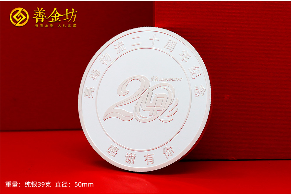 上海亮锋物流二十周年定制纯银纪念章_ 定做纪念银币 银币定制 银币制作 定制银币