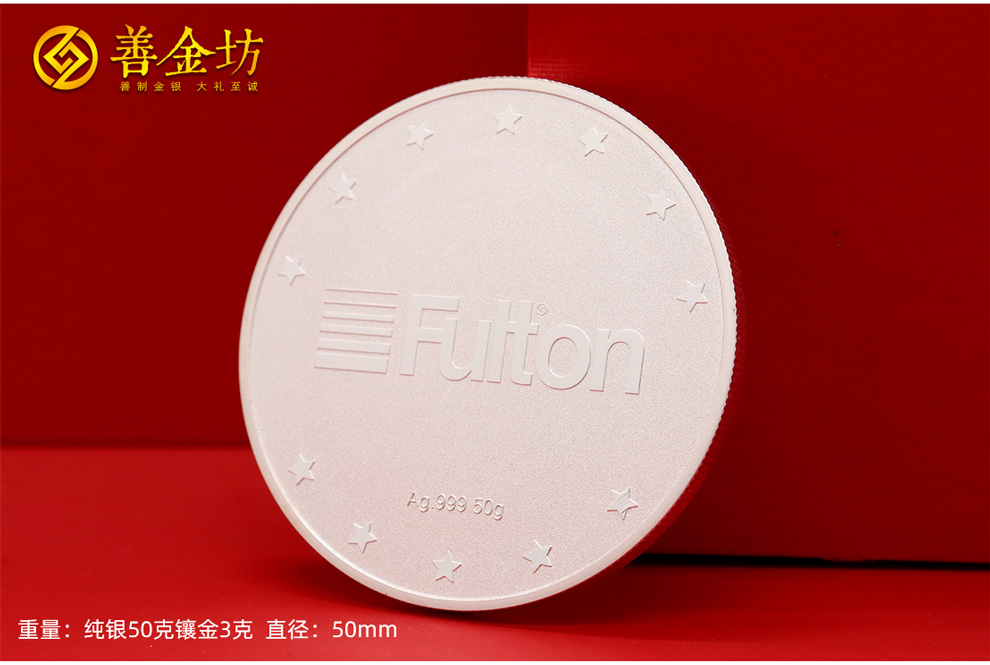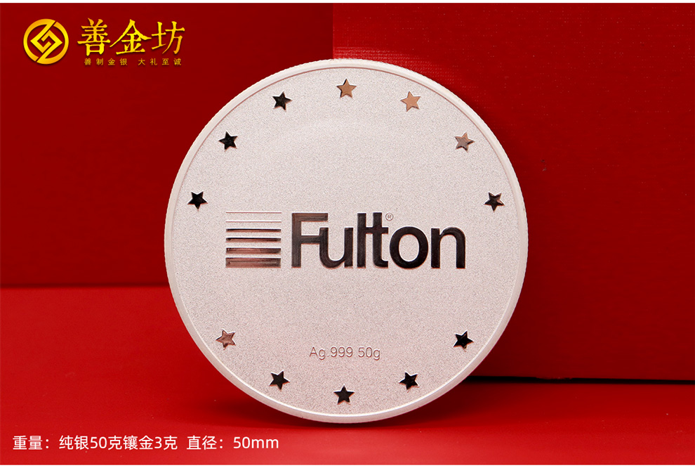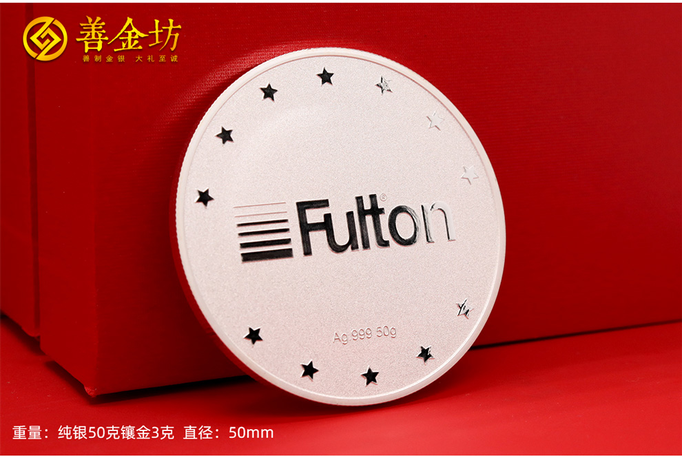 浙江杭州富尔顿银镶金纪念章_ 银币制作 纪念银币制作 纪念章制作 定做银币 银镶金纪念章 周年庆典
