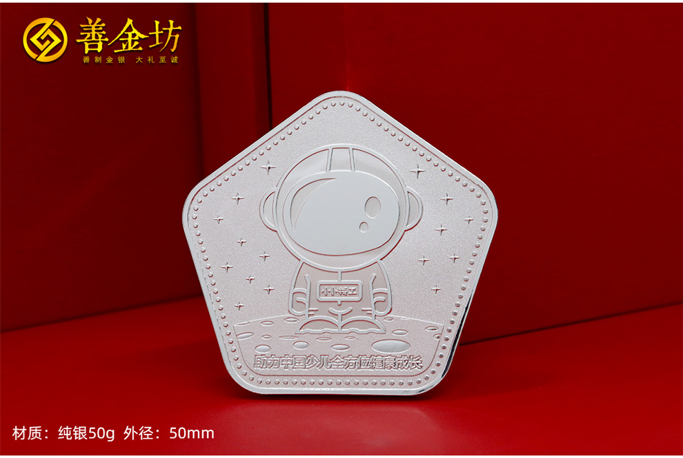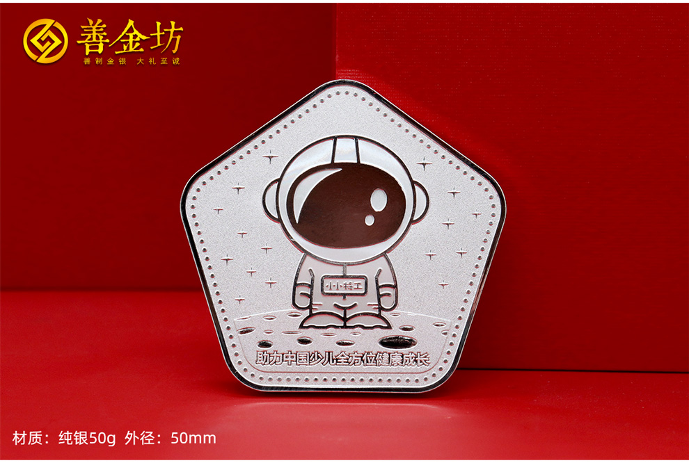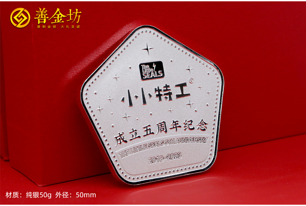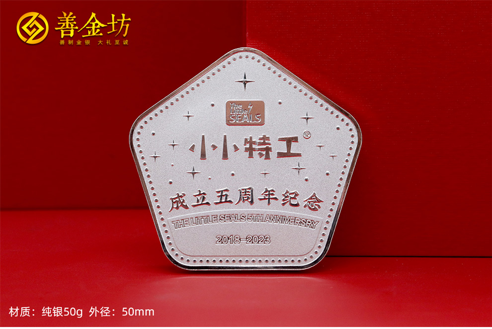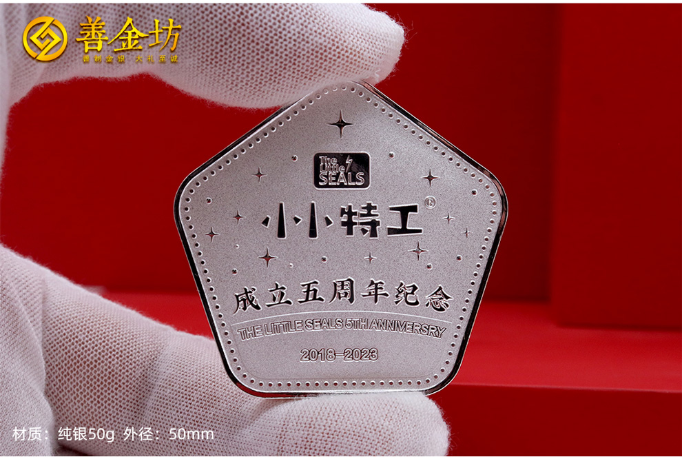 上海小小特工成立五周年定制纯银纪念章_异形纪念章定制 银币定制 银章制作 定制纪念银币