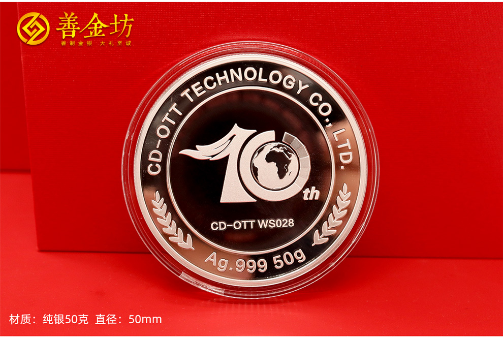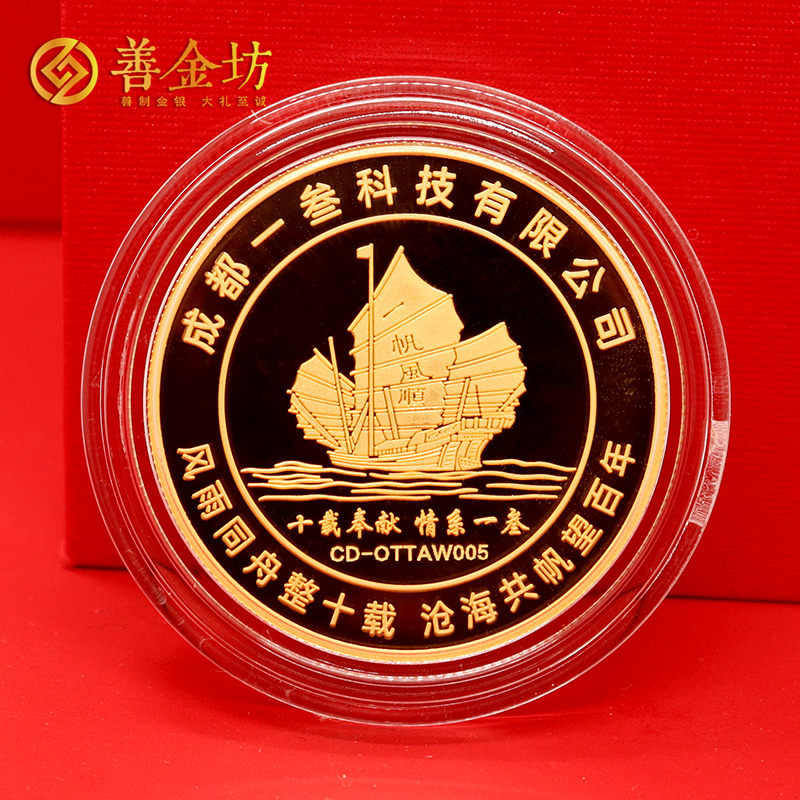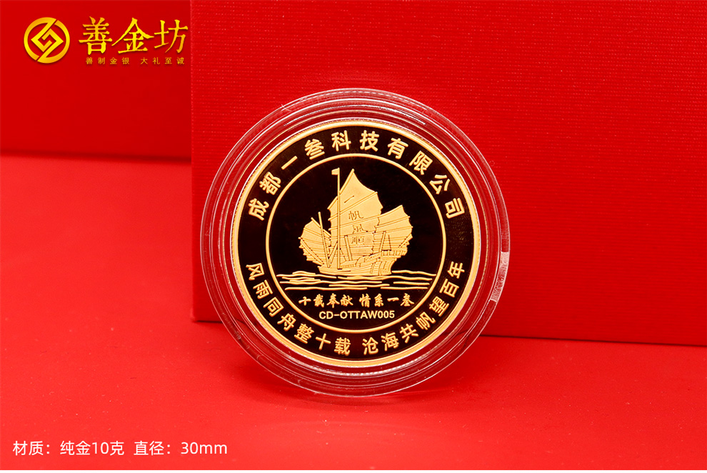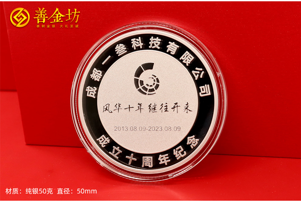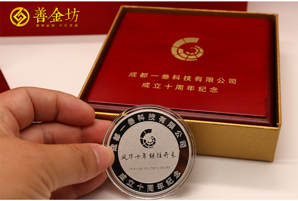 四川成都一叁科技十周年定制金银纪念章_ 定制金币 定做银币 纪念银币定制 激光
