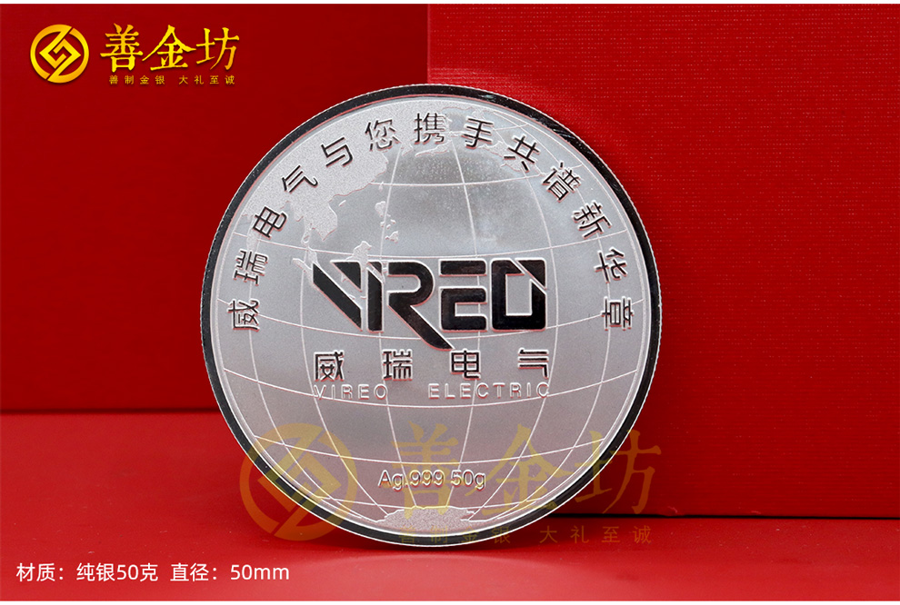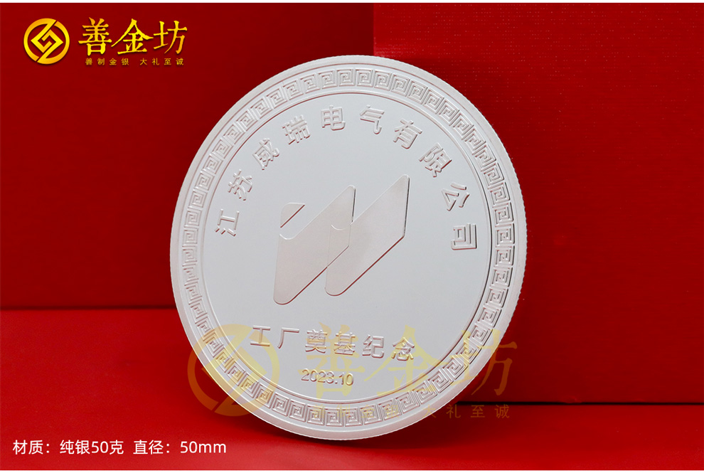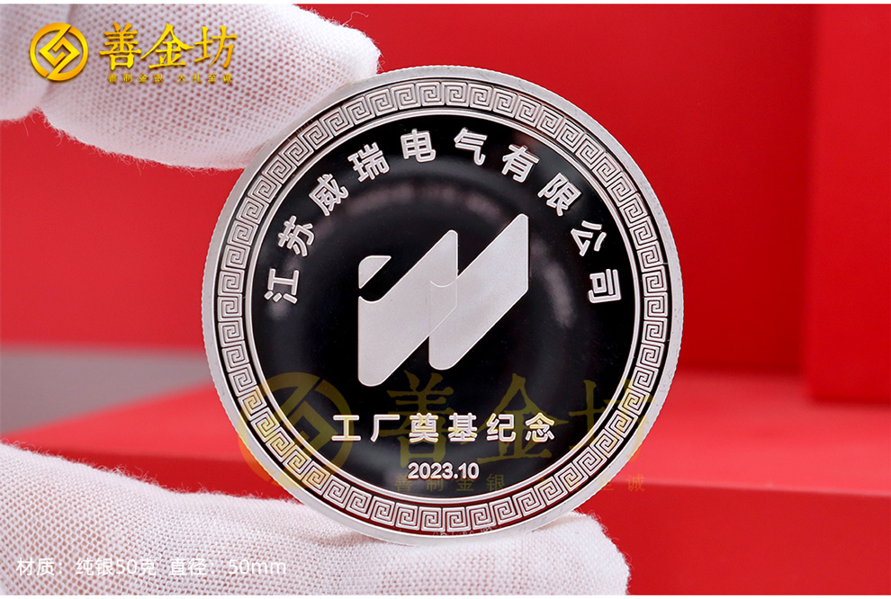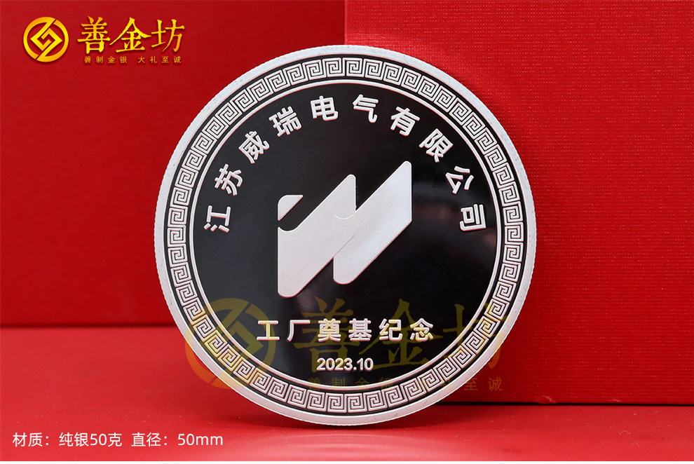 江苏威瑞电气工厂奠基定制纪念章_ 定制银币 定做银币 纪念银币定制厂家 纯银50克