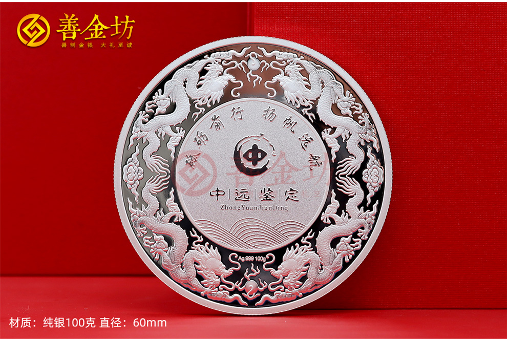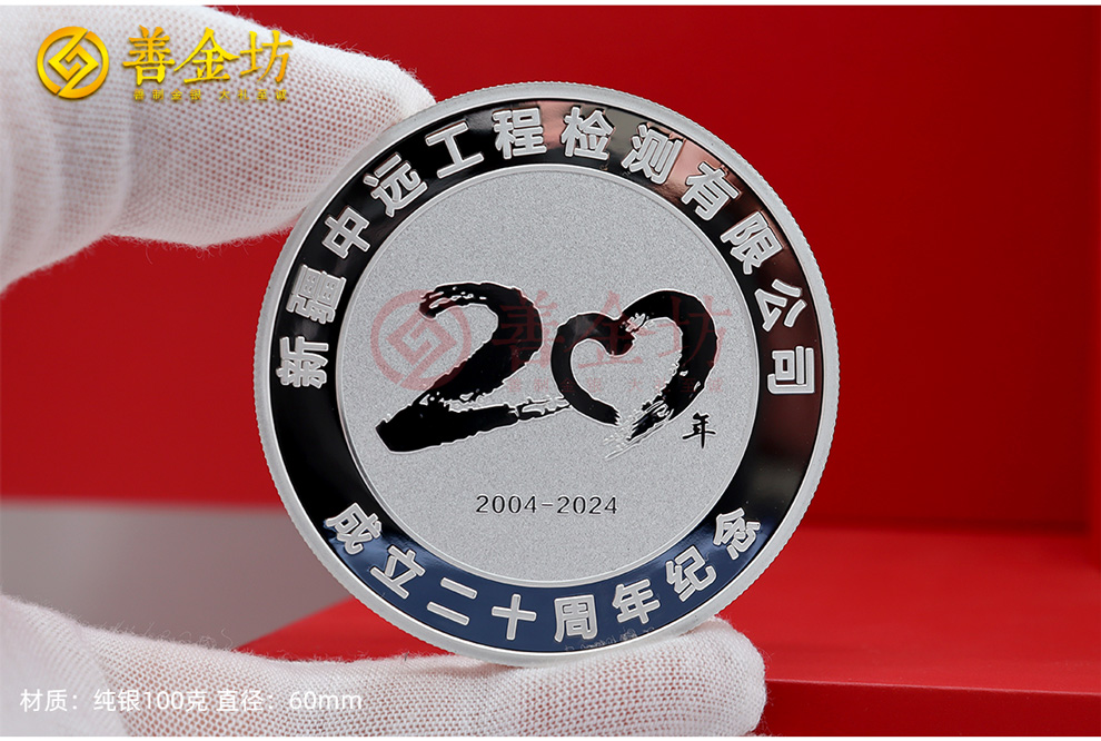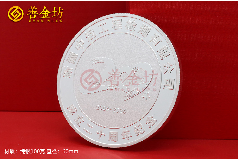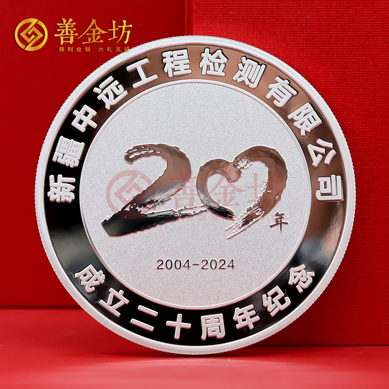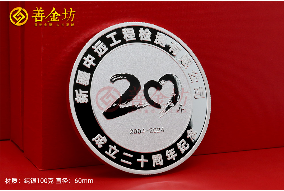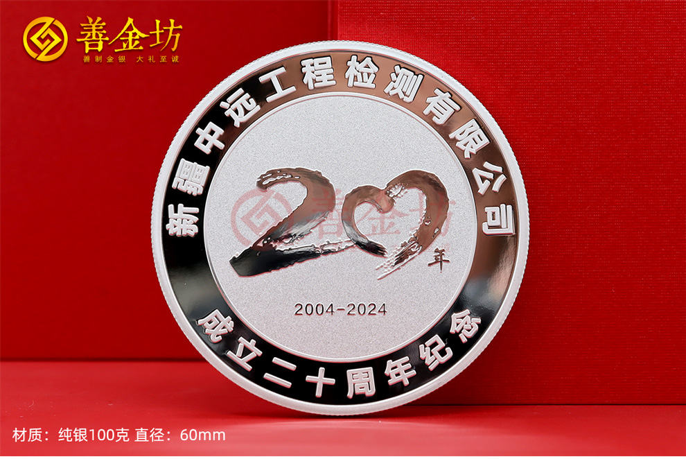 新疆中远鉴定成立二十周年定制纯银纪念章_ 银币制作 定做银币 定制银币 周年庆典