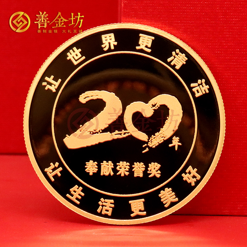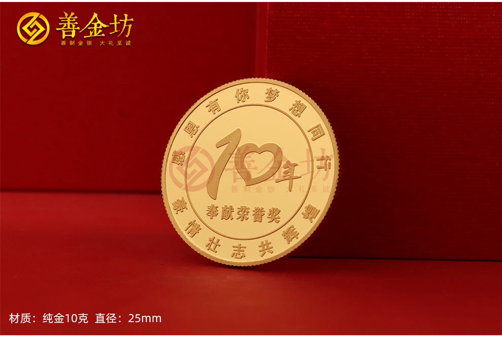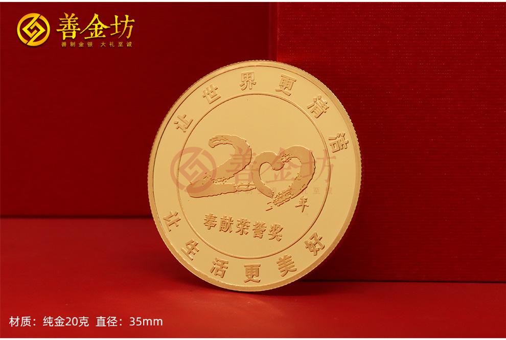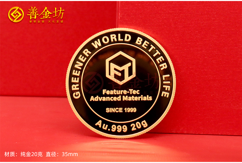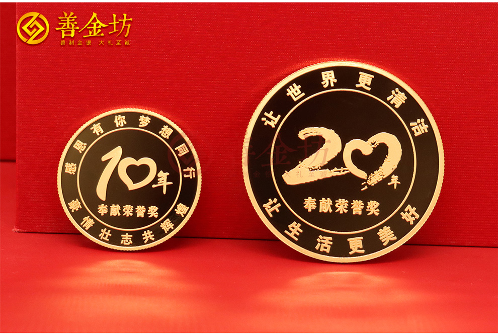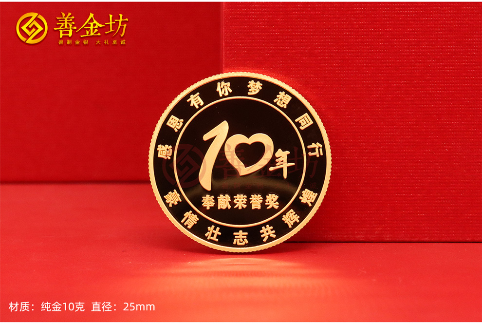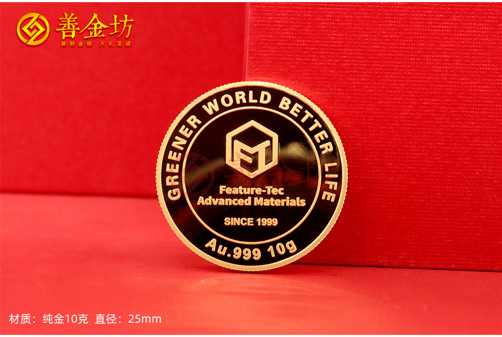 上海飞潮十年二十年员工纯金纪念章_ 定做金币 定制金币 金币制作
