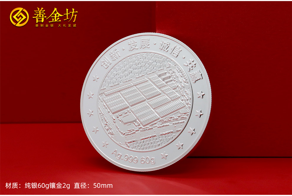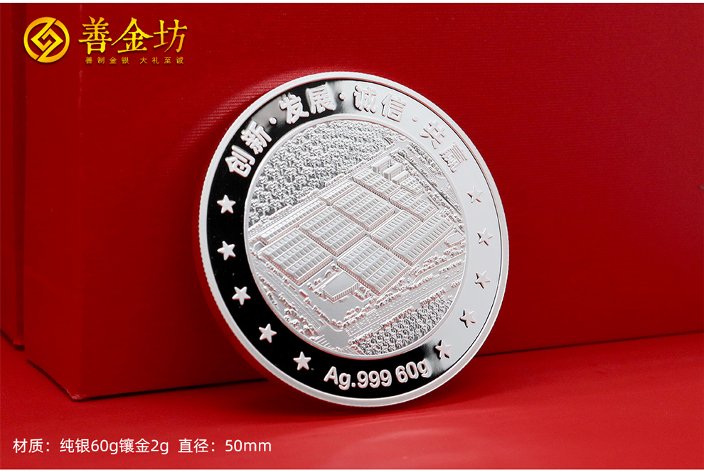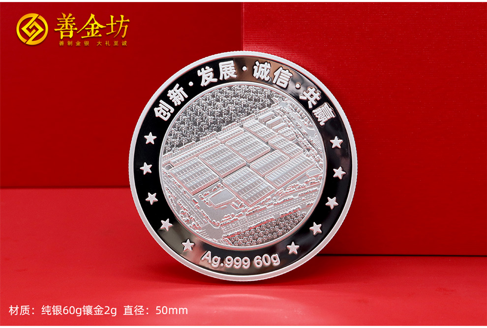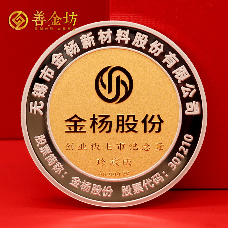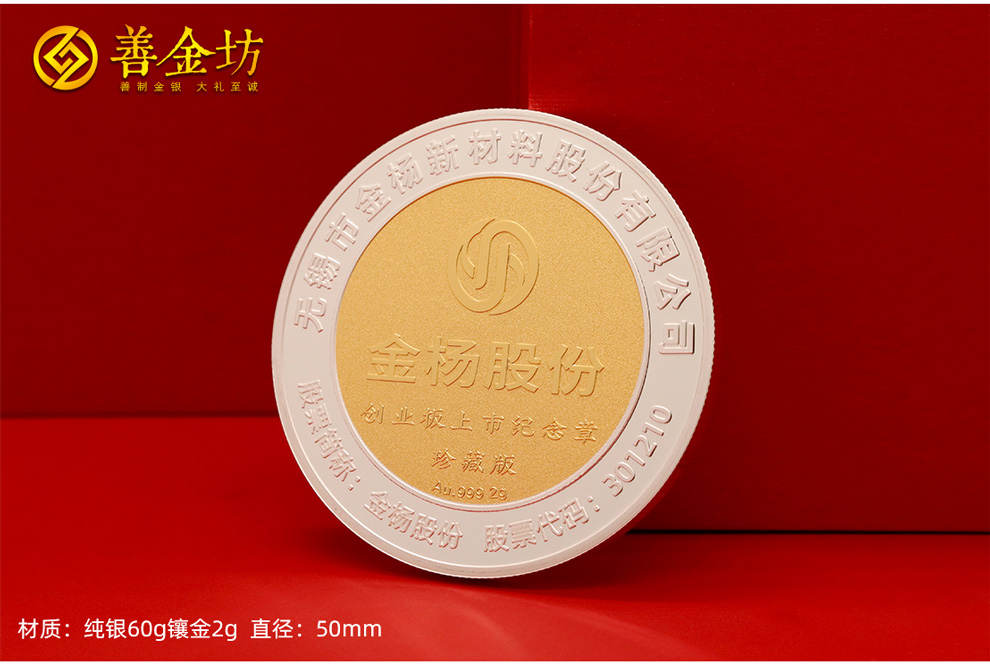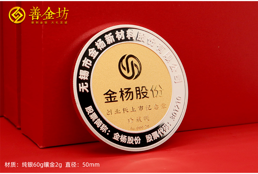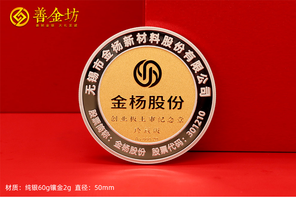 江苏金杨股份上市定制银镶金纪念章60克银镶2克金_银币定制 银币制作 定做银币 定制银币