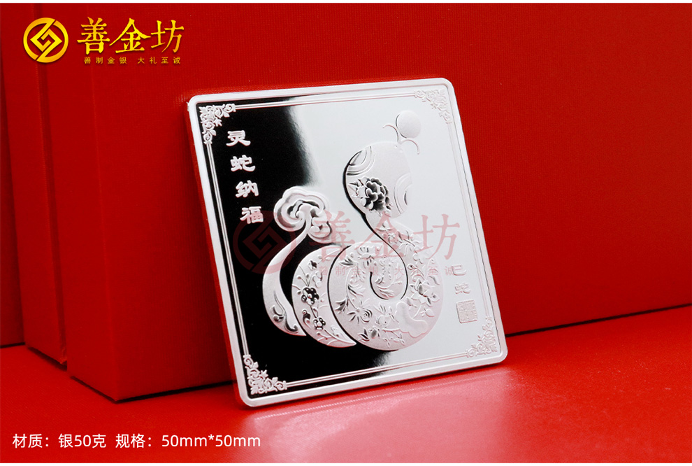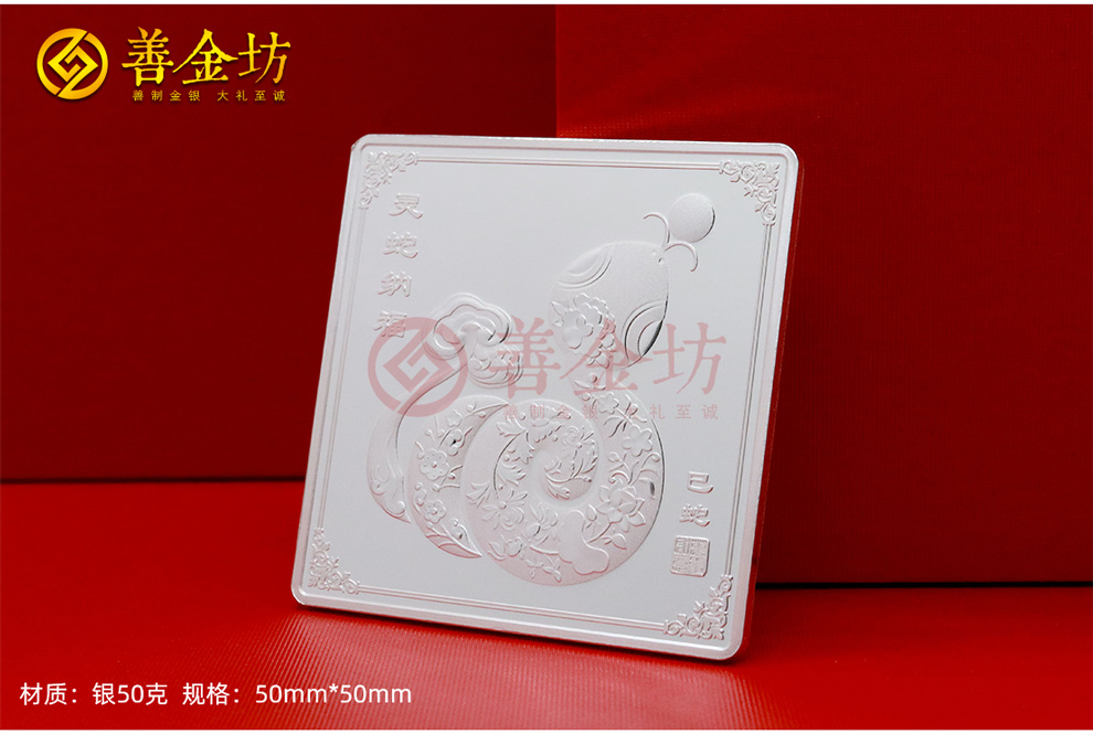为了庆祝蛇年的到来,并向员工致以新年的美好祝福,乾进国际物流特别定制了一枚蛇年生肖纯银纪念章,赋予每位员工独特的纪念意义。这款银章由上海善金坊精心打造,规格为50mm*50mm,采用Ag.999纯银材质,精致大气,寓意深远。