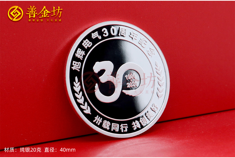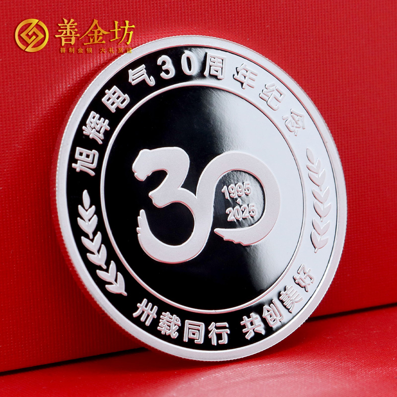 河北旭辉电气30周年定制纯银纪念章_ 定做银币 定制银币 银币定制
