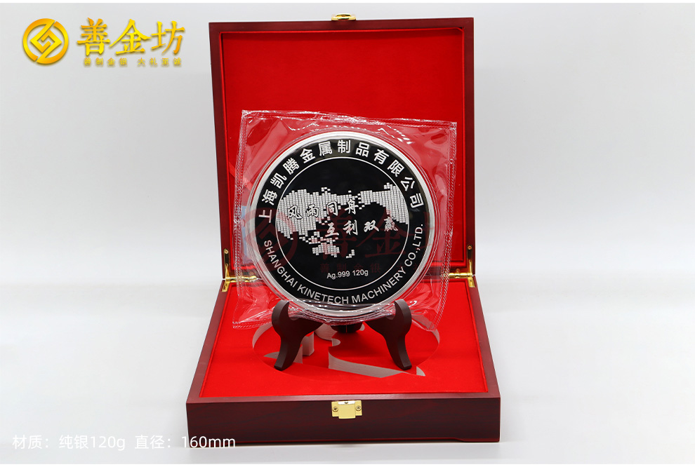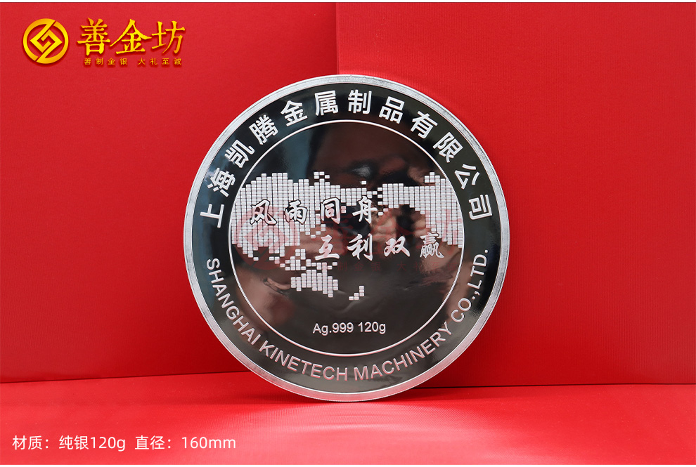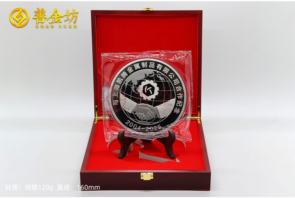 每一份长久的合作,都值得被郑重铭记;每一段携手的岁月,都需要有质感的载体来镌刻。上海善金坊深耕贵金属定制领域,以精湛工艺为笔、以纯银为纸,为上海凯腾金属制品有限公司量身打造了一款极具纪念意义与收藏价值的纯银纪念章,将二十一年风雨同舟的合作情谊永久定格。